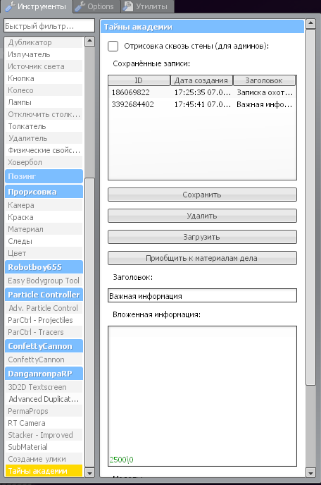 Это то же самое, что и улики, однако тайны академии существуют в виде пропов (объектов) и при обнаружении появляются у всех с оповещением и звуком.